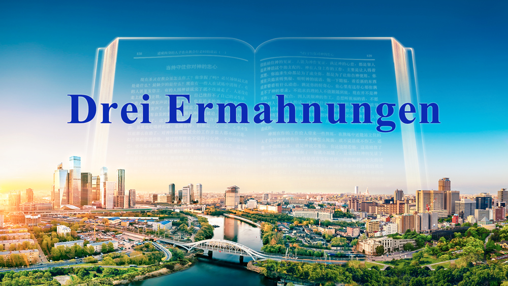 Der Allmächtige Gott sagt: "Als Gläubiger solltet ihr in allem nur Ihm treu sein und in allem Seinem Willen entsprechen. Obwohl jeder diese Lehre versteht, können diese Wahrheiten, die äußerst offensichtlich und grundlegend sind, was den Menschen betrifft, dank dessen diversen Nöten, wie Unwissenheit, Absurdität und Verderbtheit, nicht ganz von ihm erkannt werden. Ich muss euch deshalb, bevor Ich über euer Ende entscheide, zunächst einige Dinge sagen, die von außerordentlicher Wichtigkeit für euch sind. ... In eurem Leben sehe Ich, dass Vieles, was ihr tut, für die Wahrheit belanglos ist, und fordere euch deshalb ausdrücklich auf, Diener der Wahrheit zu werden, und nicht durch Frevel und Hässlichkeit versklavt zu sein. Tretet die Wahrheit nicht mit Füßen und schändet keinen Winkel des Hauses Gottes. Dies ist Meine Ermahnung an euch."